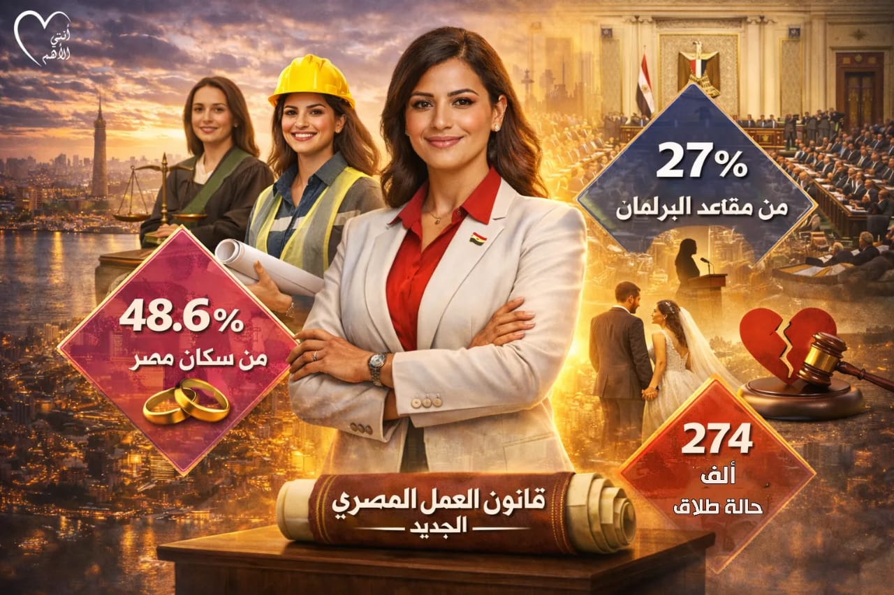بمناسبة اليوم العالمي للمرأة مبادرة أنتي الأهم تصدر تقرير يرصد مؤشرات الزواج والطلاق ومكتسبات المرأة في قانون العمل المصري الجديد في إطار الاحتفاء باليوم العالمي للمرأة، أصدرت مبادرة أنتي الأهم تقريرًا تحليليًا موسعًا يستعرض بالأرقام والبيانات واقع المرأة المصرية، وما تحقق من تقدم في مسار تمكينها سياسيًا واقتصاديًا واجتماعيًا، مع تسليط الضوء على أبرز التحديات والفرص المرتبطة بتعزيز مشاركتها في التنمية وصنع القرار. ويشير التقرير إلى أن المرأة تمثل ما يقرب من 48.6% من…
