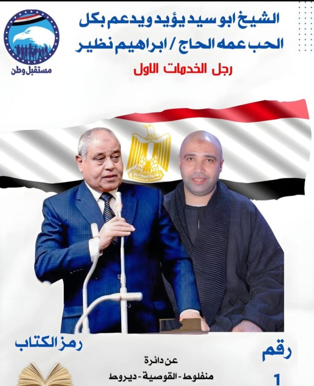 “يناشد الحاج خالد أبو سيد كل أهل القوصية وكل محبين النائب إبراهيم نظير أن نتكاتف ونقف مع من يمثلنا، وهو الحاج إبراهيم نظير، الذي عرفناه ساعياً في الخير، ومدافعاً عن مصالح الدائرة.”