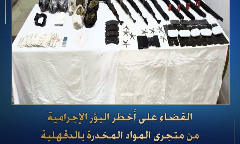 تمكنت أجهزة البحث الجنائى بمديرية أمن #الدقهلية بمشاركة قطاع الأمن العام من رصد بؤرة إجرامية للإتجار بالمواد المخدرة تضم (9 عناصر جنائية شديدة الخطورة سبق إتهامهم والحكم عليهم فى جنايات أبرزها “سرقة بالإكراه، إتجار بالمخدرات وحيازة أسلحة نارية، إطلاق أعيرة نارية، حريق عمد”) قامت بفرض سيطرتها على إحدى القرى بمركز شرطة منية النصر معززةً سطوتها الإجرامية من خلال حيازة أسلحة نارية.
