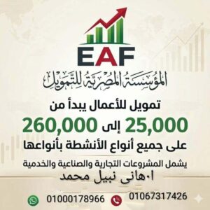 📍 العنوان: برج التحرير – فرع دكرنس برج التحرير مقابل مركز شرطه دكرنس – محافظة الدقهلية. تمويل يبدا من 25000 حتى 260000 من اول مرة على جميع الانشطه بانواعها والصرف فى اسرع وقت