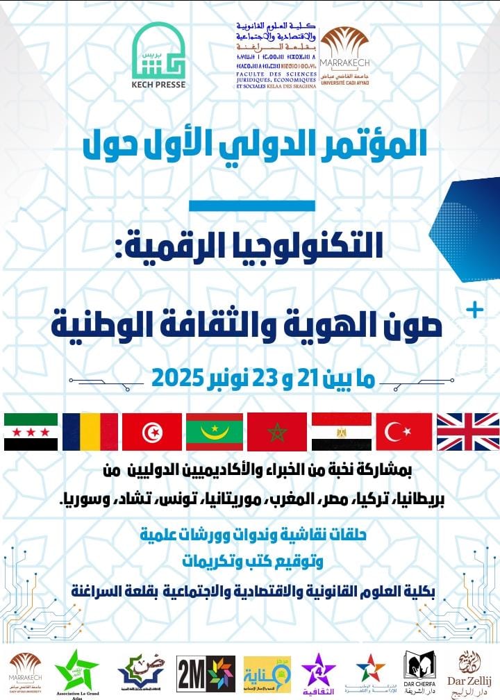 في ظل موجات التكنولوجيا والتي تتشكل عبرها ثقافات جديدة، يبقى الحفاظ على الهوية الوطنية تحديًا يتصدر اهتمامات المجتمعات العربية. ومن هذا المنطلق، تستضيف جامعة القاضي عياض بالمملكة المغربية فعاليات المؤتمر الدولي الأول حول التكنولوجيا الرقمية: صون الهوية والثقافة الوطنية، الذي يُعقد خلال الفترة من 21 إلى 23 نوفمبر، بمشاركة نخبة من الباحثين والخبراء من مختلف الدول.