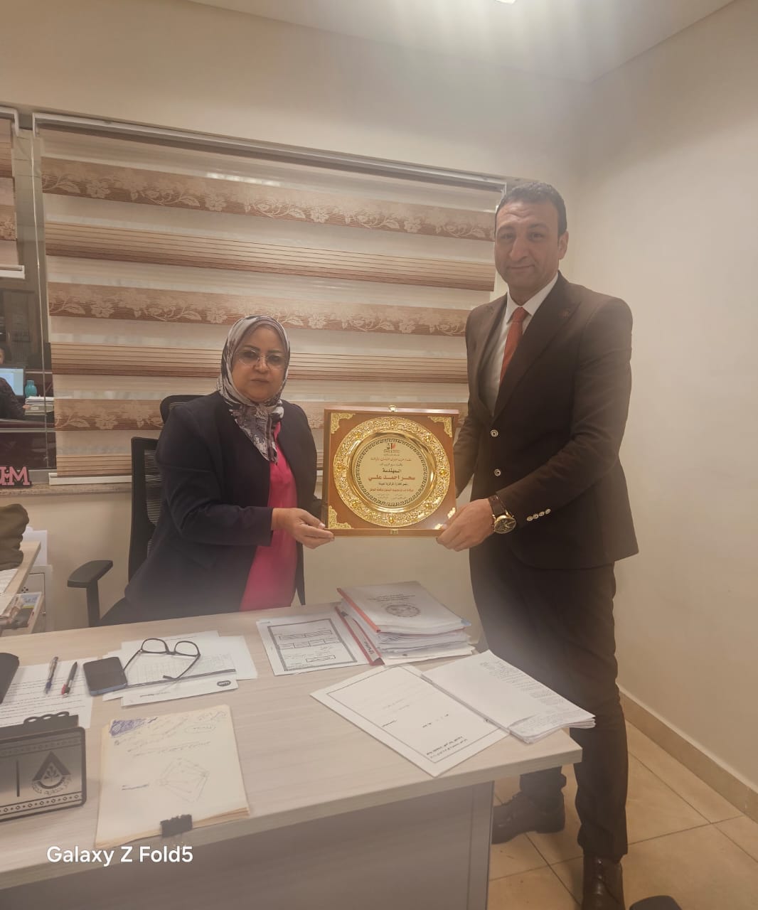 النائب نافع التراس يُهدى درع حقوق الإنسان والمواطنة للمهندسة سحر أحمد على تقديراً لجهودها الوطنية الملموسة