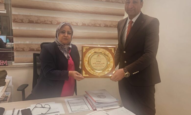 النائب نافع التراس يُهدى درع حقوق الإنسان والمواطنة للمهندسة سحر أحمد على تقديراً لجهودها الوطنية الملموسة