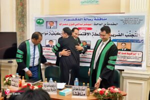 وقد نوقشت الرسالة أمام لجنة علمية رفيعة المستوى برئاسة الأستاذ الدكتور/ إبراهيم عبد الله عبد الرؤوف، وعضوية الأستاذ الدكتور/ أيمن عبد الغفار، والمستشار الدكتور/ علاء عصام الدين سعفان، الذين أشادوا بقيمة الرسالة وأهميتها العلمية والتطبيقية.