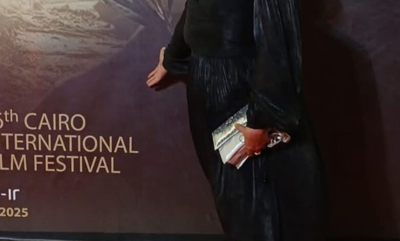 إيمي عبد العزيز تتألق على السجادة الحمراء في مهرجان القاهرة السينمائي