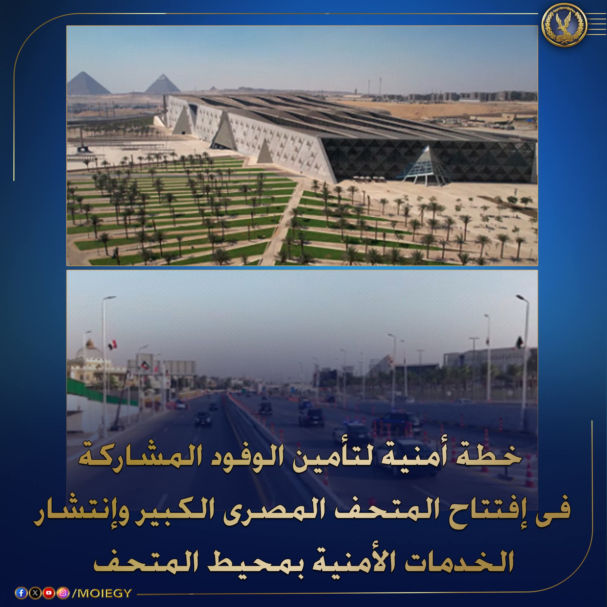 خطة أمنية لتأمين الوفود المشاركة في إفتتاح المتحف المصرى الكبير وإنتشار الخدمات الأمنية بمحيط المتحف