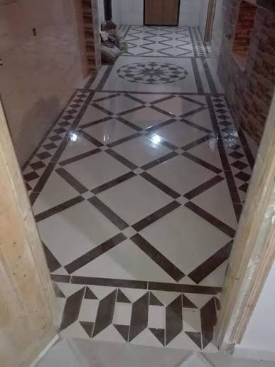 يحرص على خطوط مستقيمة، توافق النقشات، وأن البلاط يكون متماسك 100%.