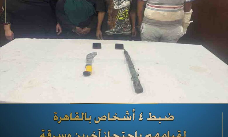 ضبط 4 أشخاص بالقاهرة لقيامهم بإحتجاز آخرين وسرقة هاتفى محمول بسبب خلافات مالية بالقاهرة