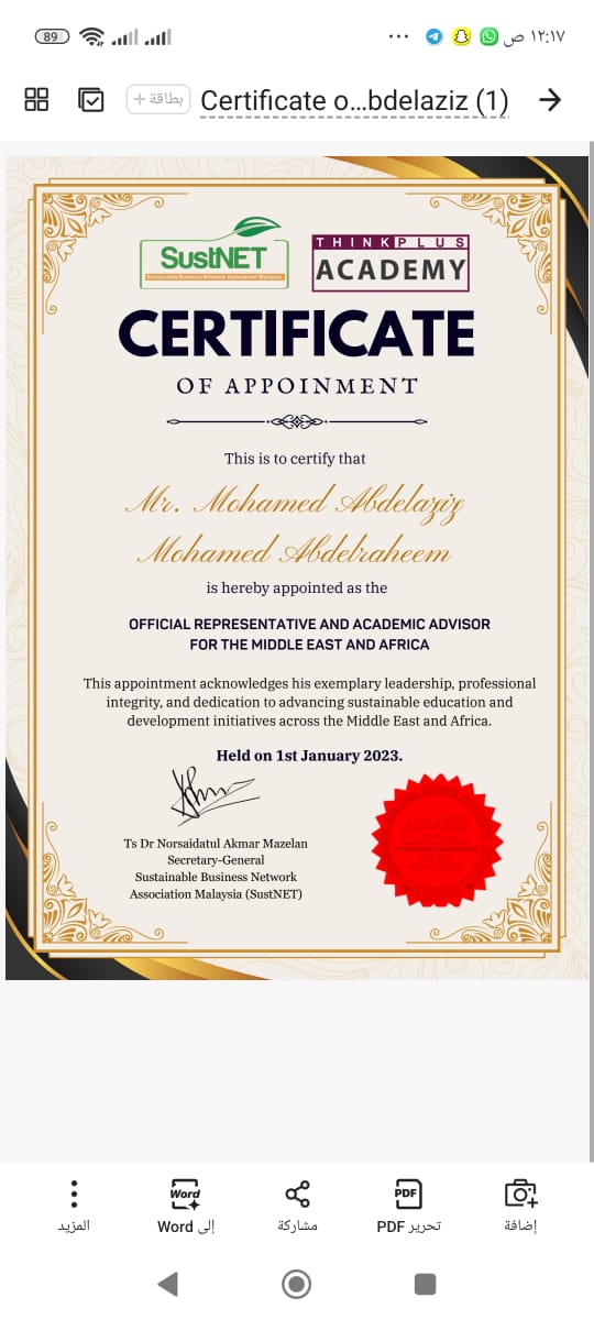 يواصل محمد عبدالعزيز محمد عبدالرحيم ترسيخ حضوره المتميز في مجالات الاستشارات والتسويق التعليمي الاحترافي، حيث يسهم بفاعلية في دعم وتطوير المؤسسات التعليمية والاقتصادية من خلال تقديم رؤى مبتكرة وحلول عملية تواكب المتغيرات العالمية المتسارعة.