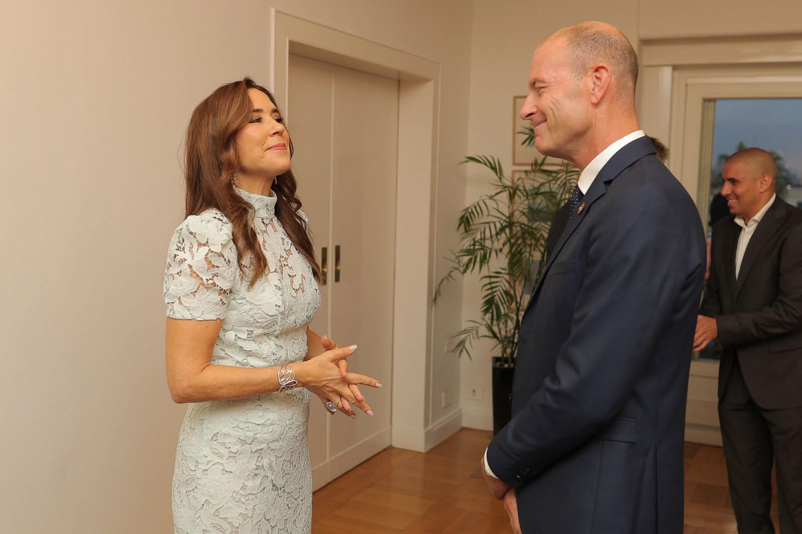 وذكرت سفارة الدنمارك بالقاهرة -في بيان اليوم الأحد- أن الملكة والوزير التقيا خلال الحفل بعدد من المواطنين الدنماركيين المقيمين والعاملين في مصر، من بينهم المدير الفني لنادي الأهلي المدرب الدنماركي ياس توروب، كما رحبت بعدد من الشخصيات المصرية البارزة؛ من بينهم: الفنانة القديرة يسرا، ولاعب كرة القدم السابق محمد زيدان، والمهندس حسام صالح الخبير في مجالي الاتصالات والإعلام في مجموعة المتحدة للخدمات الإعلامية.