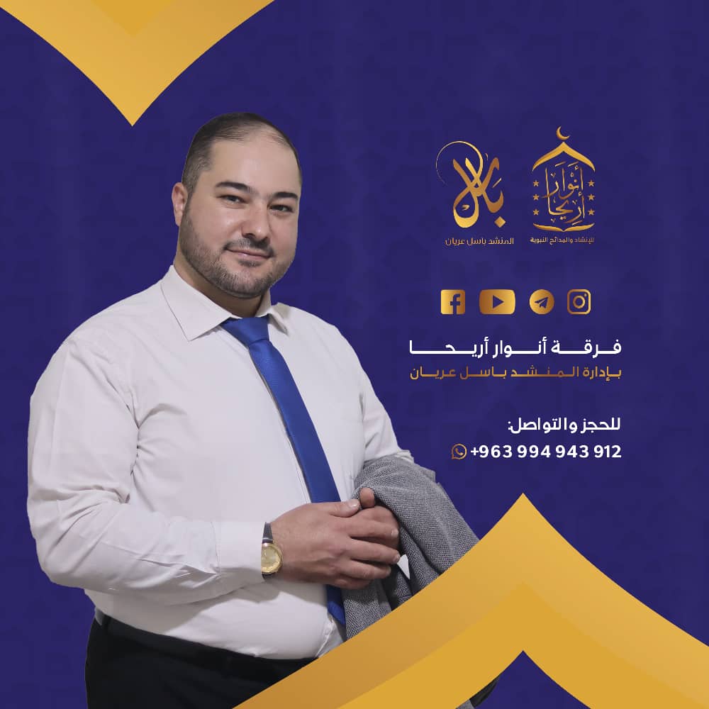 بين السكينة التي تمنحها خدمة ضيوف الرحمن، وبين الأصالة التي يحملها الإنشاد الديني، تبرز مسيرة باسل زكريا عريان كنموذج للمبدع الذي طوّع موهبته لخدمة الرسالة والروح. هو ابن محافظة إدلب، وتحديداً مدينة أريحا التاريخية، التي استلهم منها عراقة الصوت وصفاء الكلمة.
