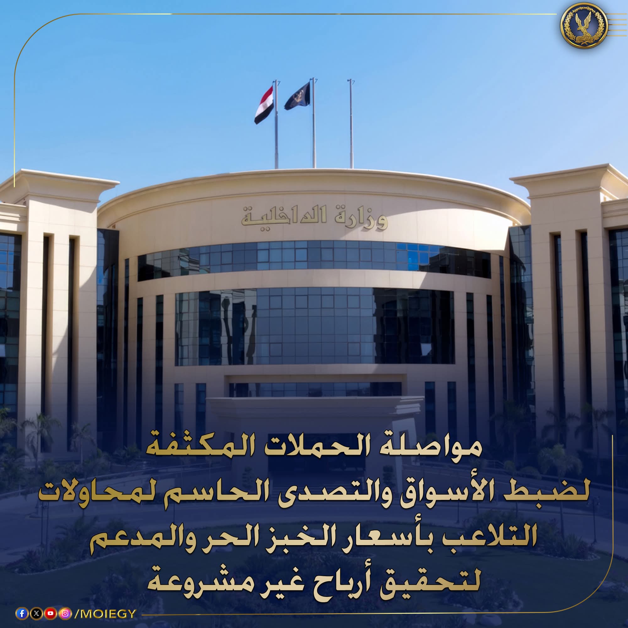 إستمراراً لجهود أجهزة وزارة الداخلية لحماية جمهور المستهلكين وإحكام الرقابة على الأسواق والتصدى لمحاولات التلاعب بأسعار الخبز والبيع بأزيد من السعر المقرر وعدم الإعلان عن الأسعار.