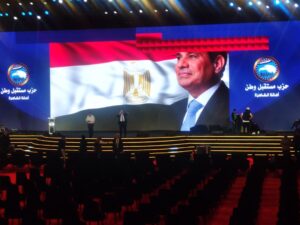 هتاف جماهيري بإنجازات الرئيسي السيسي وحب الوطن في المؤتمر الختامي بامانه القاهره لحزب مستقبل وطن لانتخابات مجلس النواب 2025