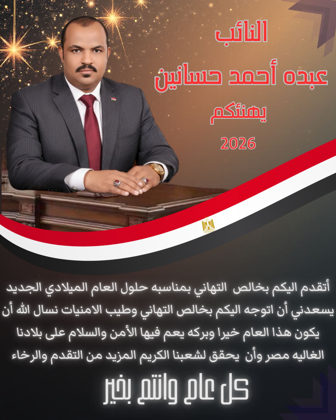 أتمنى للجميع عامًا جديدًا مليئًا بالنجاح والتفوق، وأن يعود عليكم وعلى أسرتكم بالخير والبركة. نؤكد على التزامنا بدعم مسيرة التنمية والبناء التي تشهدها بلادنا، وسنعمل بكل جهد لخدمة الوطن والمواطنين