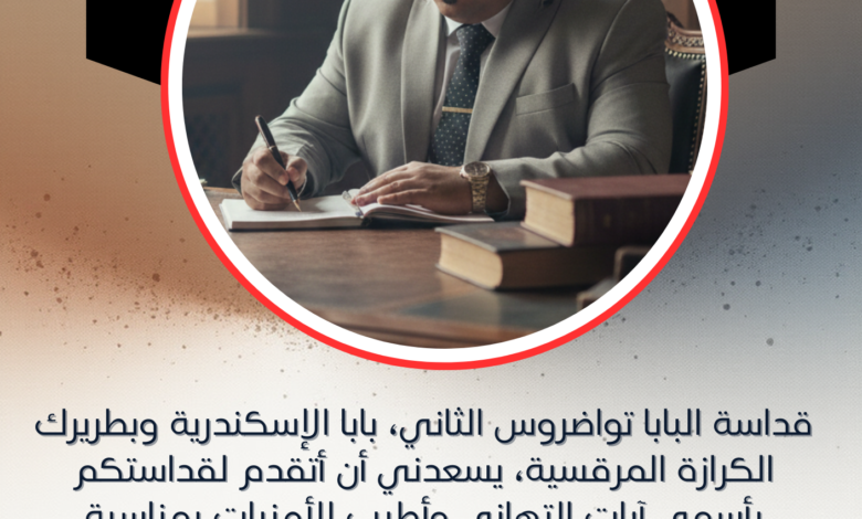 وفي هذه المناسبة، نتوجه بفيض من التقدير والتبجيل لقداسة البابا تواضروس الثاني، بابا الإسكندرية وبطريرك الكرازة المرقسية.