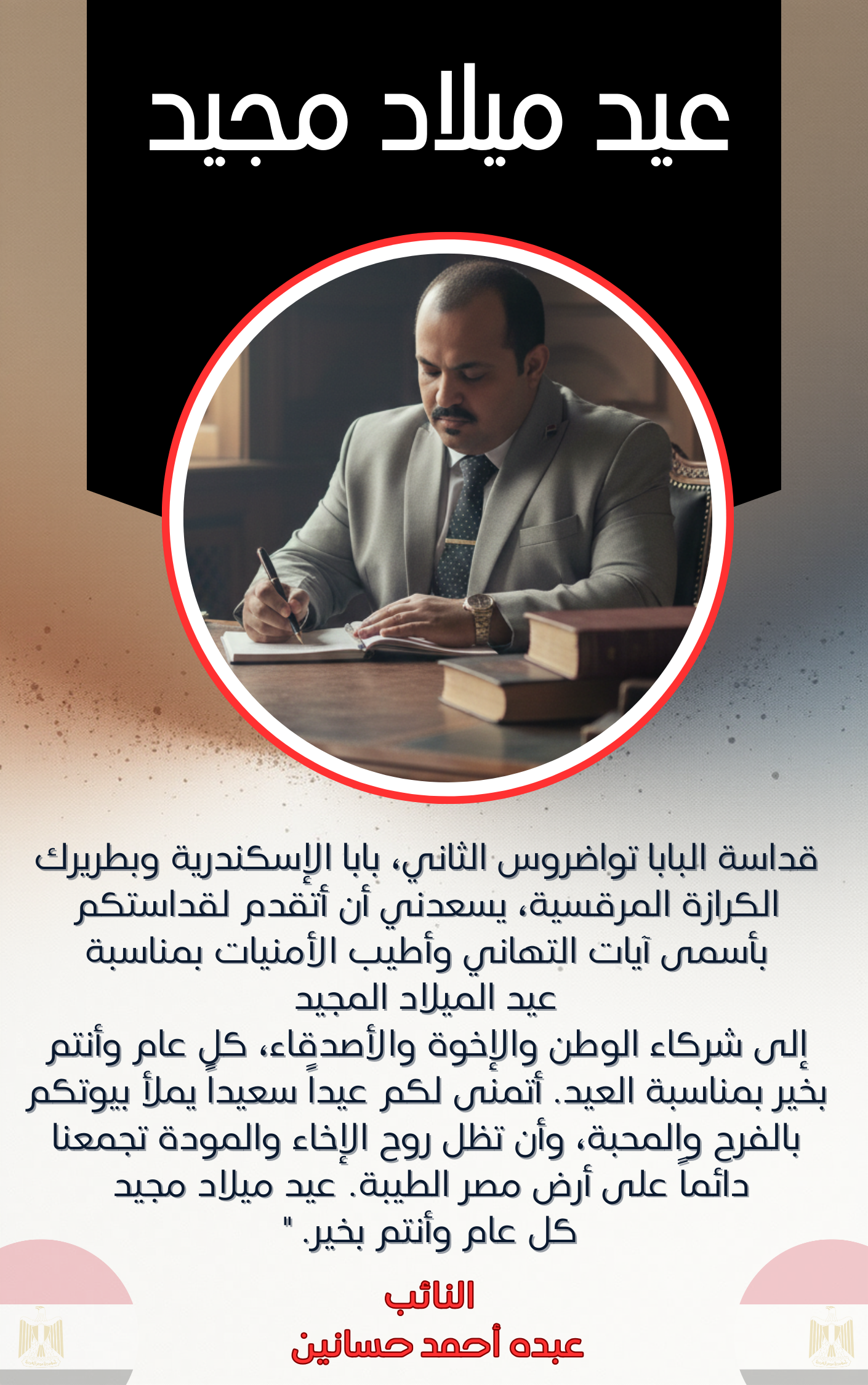 يتقدّم النائب عبده أحمد حسانين بأسمي آيات التهاني مناسبه عيد الميلاد المجيد2026