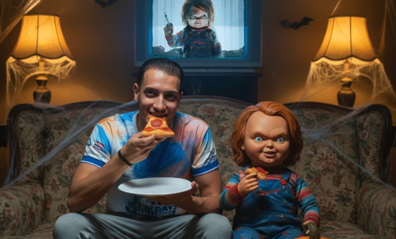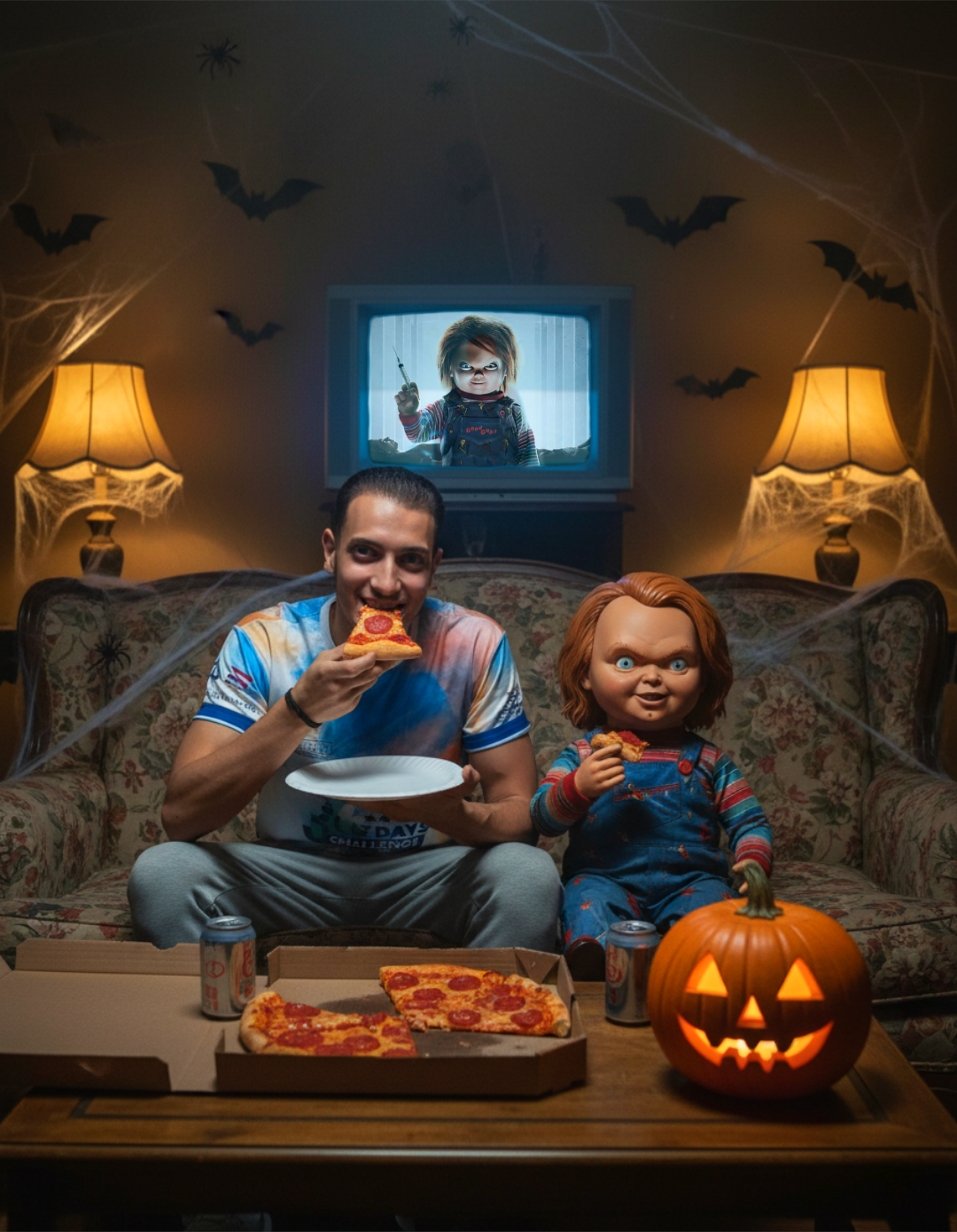 وما اجمل من انك تتناول البيتزا مع تشاكي 😅 And what is more beautiful than eating pizza with Chucky