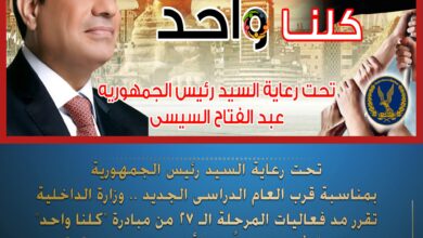 تحت رعاية السيد رئيس الجمهورية بمناسبة قرب العام الدراسي الجديد .. وزارة الداخلية تقرر من فعاليات المرحلة الـ ٢٧ من مبادرة “كلنا واحد” لمدة شهر إعتباراً من الأول من سبتمبر ٢٠٢٥ لتوفير المستلزمات المدرسية وكافة السلع الغذائية